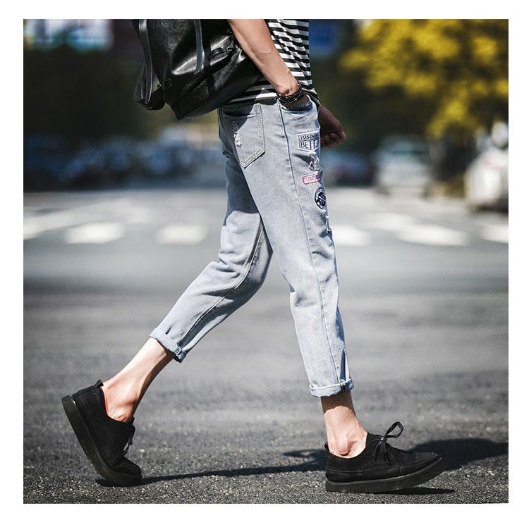 Summer casual holes Jeans UK slim plus size straight leg trousers